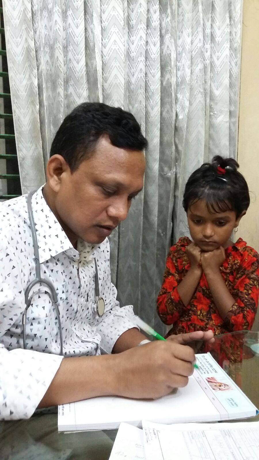 Na deze stop kon de tocht naar Satkhira voortgezet worden; de totale rit nam ongeveer twee uur in beslag. Eenmaal daar werd de bus in tweeën gesplitst en mochten de kinderen die naar de kinderarts moesten op de kinderpoli wachten en de kinderen voor de neuroloog werden op de neurologie gedropt. Het kindje met hartproblemen drentelde wat rond. Bij de neuroloog werden twee kindjes vluchtig bekeken door de arts. Na een snelle blik gaf de beste man aan dat het kindje met microcephalie niet binnen zijn specialisme viel en aangezien er verder toch niks aan te veranderen viel, was alleen medicatie voor de convulsies van het kindje wel gepast. Hier was overigens geen extra informatie vanuit de moeder voor nodig (frequentie/ernst van de convulsies?), alleen het gewicht voor het kind was voldoende voor de man om met zijn mobiel uit te rekenen welke dosis medicatie het kind nodig had. Kindje twee met convulsies was hetzelfde verhaal. Alleen het gewicht was belangrijke informatie. Vragen werden opnieuw niet gesteld en huidig medicatiegebruik deed er ook niet toe.