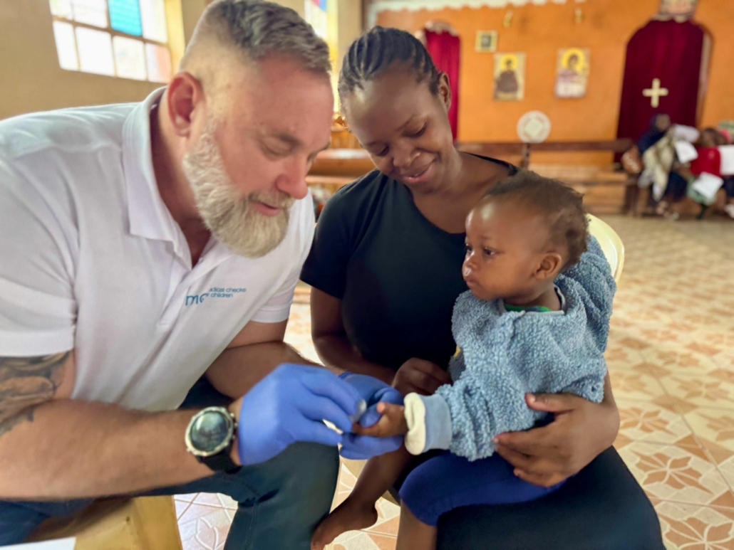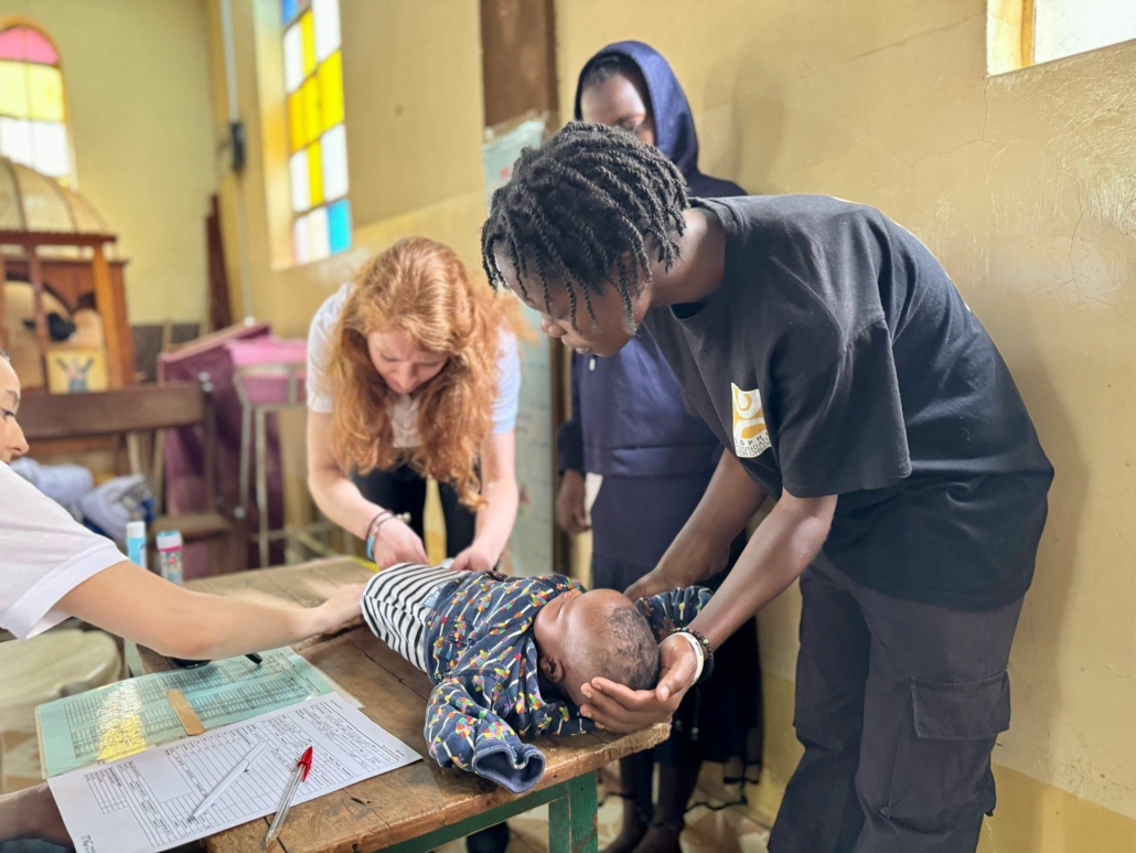 Tijdens het checken merken we al snel hoe ontzettend liefdevol de kinderen hier verzorgd worden. Ook zijn ze ontzettend lief voor elkaar en als een kindje iets spannend vindt, komen er direct een paar oudere kinderen troosten en gerust stellen. We werken opnieuw als een geoliede machine en er komen ook wat ouders met kinderen uit het dorp.