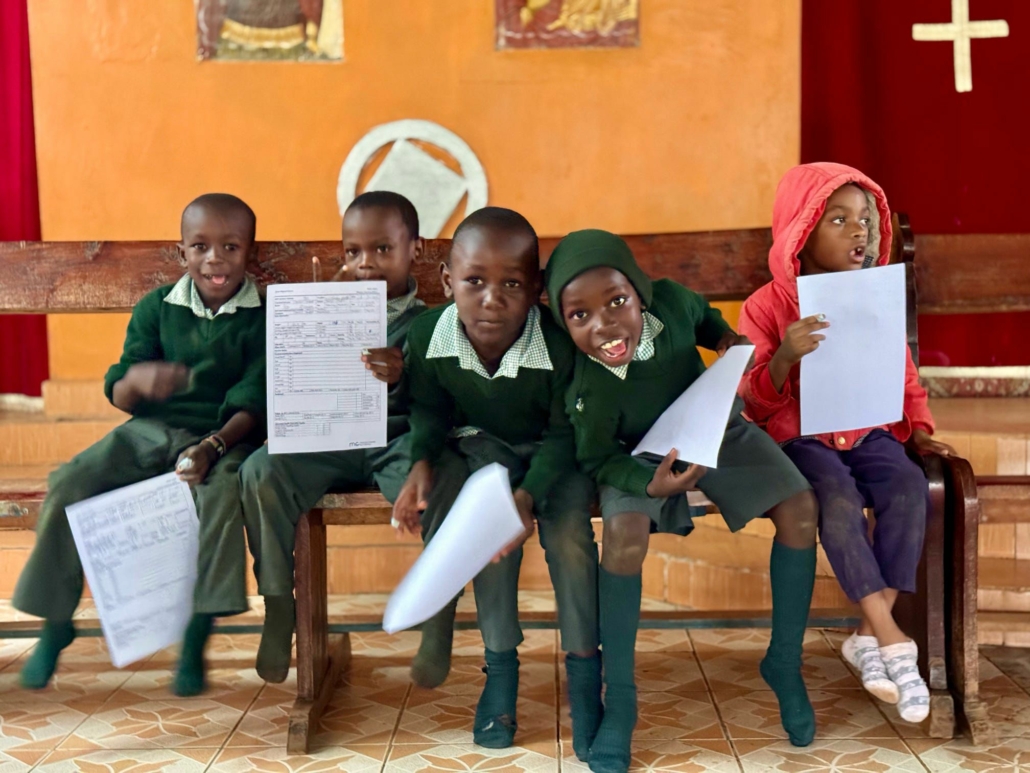 Vanochtend iets vroeger onze wekker en om 7.15 stond er een lekker ontbijtje voor ons klaar. Eieren, pannenkoeken, het ontbreekt ons hier aan niks. Om stipt 8 uur zaten we in de bus en reden richting Riruta naar een school opgezet door een bisschop. Eenmaal aangekomen bleek dat de kinderen nog in de lokalen zaten waar wij zouden gaan checken. Terwijl wij alle spullen uit de bus haalden, kwamen de kinderen uit de lokalen, werden de tafels aan de kant geschoven en kon het checken beginnen.