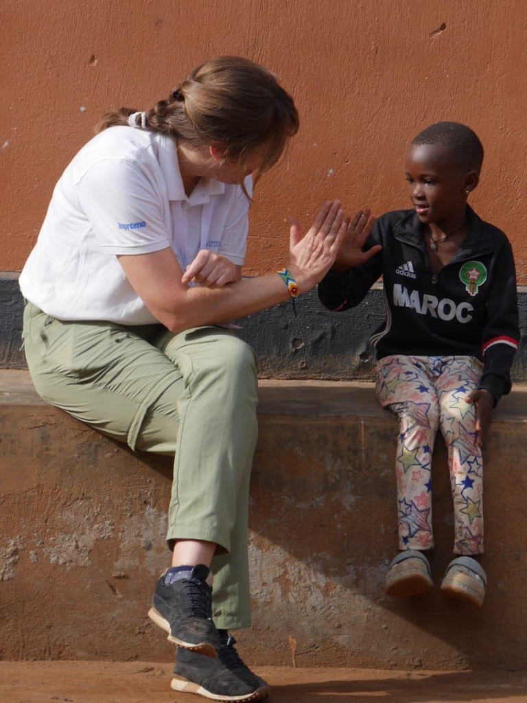 Vanmorgen kwam het busje op tijd, maar de grootte van de bus viel tegen. Gelukkig is ons team zowel letterlijk als figuurlijk flexibel; we pasten er met z’n allen in. Na een vlotte opbouw was de eerste hobbel die we moesten nemen het aantal vertalers wat erg beperkt was. Ons motto was “gewoon beginnen en het verschil maken voor de kinderen”.