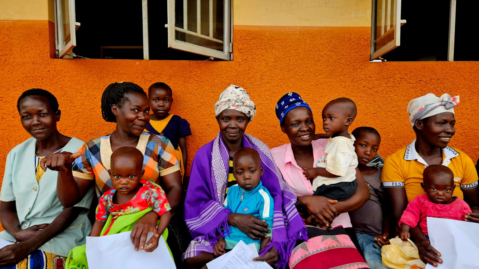 Bij aankomst worden we omsingeld door zo’n 200 kinderen die nieuwsgierig kijken wat we komen doen. Een grote mangoboom op het midden van het terrein biedt schaduw aan de wachtende moeders en kinderen. Het rode Afrikaanse zand (‘lateriet’) laat ons niet vergeten dat we in Oeganda zijn.